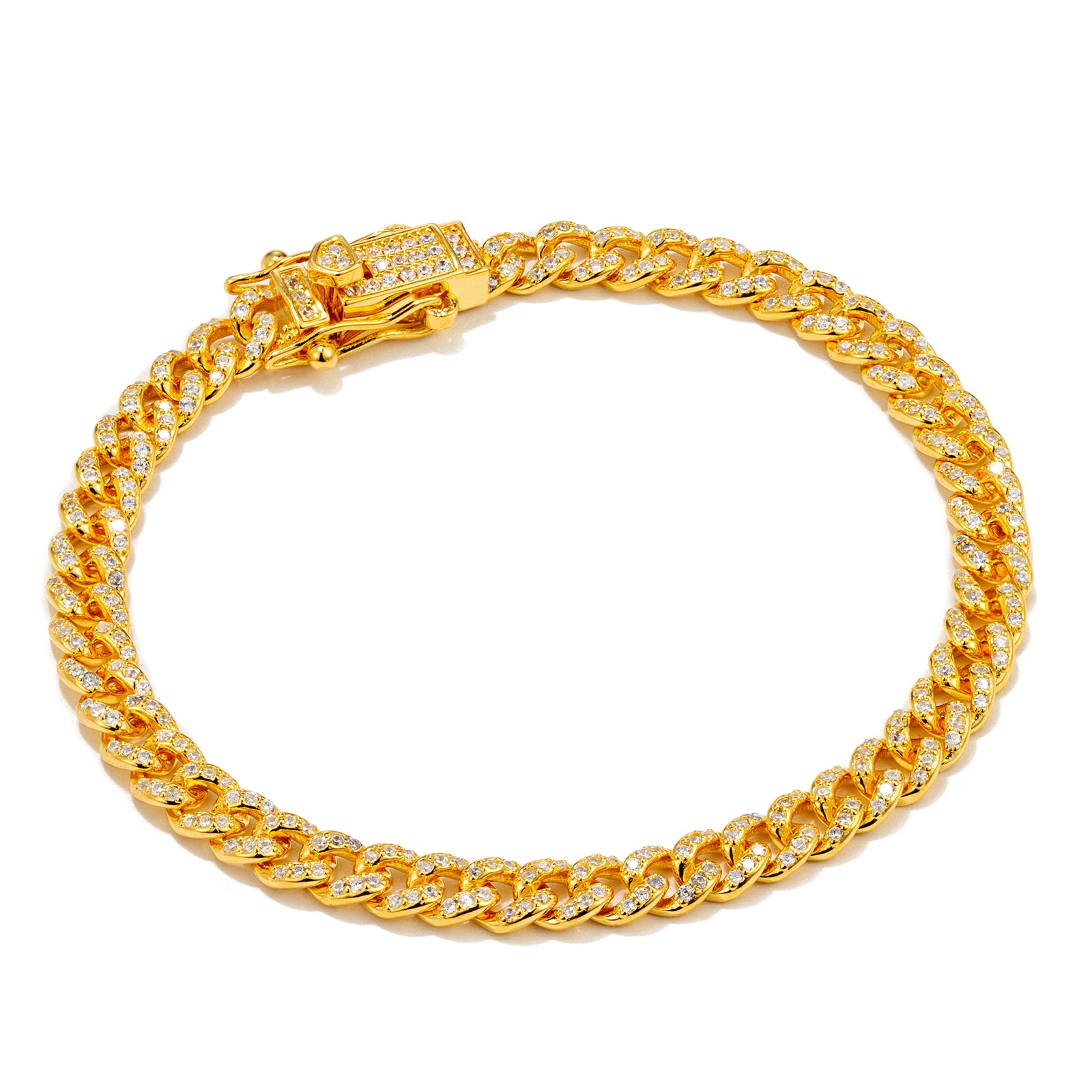 Product form ICED OUT CUBAN BRACELET 4mm | GOLD $148.00 Gold / 15cm Gold / 17cm Gold / 19cm Gold / 21cm Color Gold Length 15cm 17cm 19cm 21cm Add to cartIn stock ready to shipFREE shipping on orders over $100Easy returns and exchanges A modern statement with a refined edge.This 4mm iced Cuban bracelet features top-tier man-made diamonds, adding controlled sparkle to a... Read more Read more