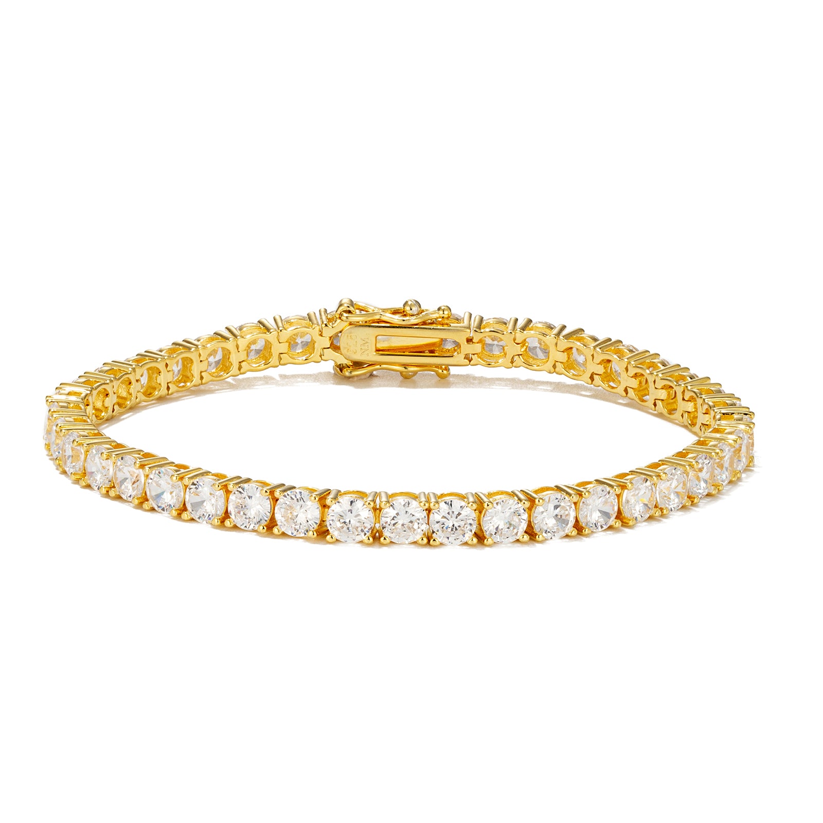 Product form TENNIS BRACELET 4mm | GOLD $169.00 Gold / 15cm Gold / 17cm Gold / 19cm Gold / 21cm Color Gold Length 15cm 17cm 19cm 21cm Add to cartIn stock ready to shipFREE shipping on orders over $100Easy returns and exchanges A timeless classic, refined to perfection.The 4mm Tennis Bracelet features a continuous row of high-grade 5A cubic zirconia diamond, precision-set... Read more Read more